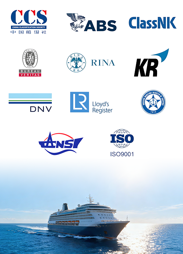 產(chǎn)品先后取得CCS產(chǎn)品型式認證、BV工廠檢驗型式認證以及中國、美國、英國、法國、德國、意大利、挪威、日本、俄羅斯、韓國船級社產(chǎn)品檢驗認可證書。累計申請和獲得國家發(fā)明專利2項,實用新型專利30項。2014年獲國家標委會采用國際標準I類證書;2021年獲江蘇省工業(yè)企業(yè)質量信用A級企業(yè);2024年獲中國機械工業(yè)聯(lián)合會全國機械工業(yè)產(chǎn)品質量創(chuàng)新大賽優(yōu)秀獎。公司在供應鏈中幫助下游船廠和終端用戶降低采購成本,縮短供貨周期,提升了整個產(chǎn)業(yè)鏈的價值和競爭力。